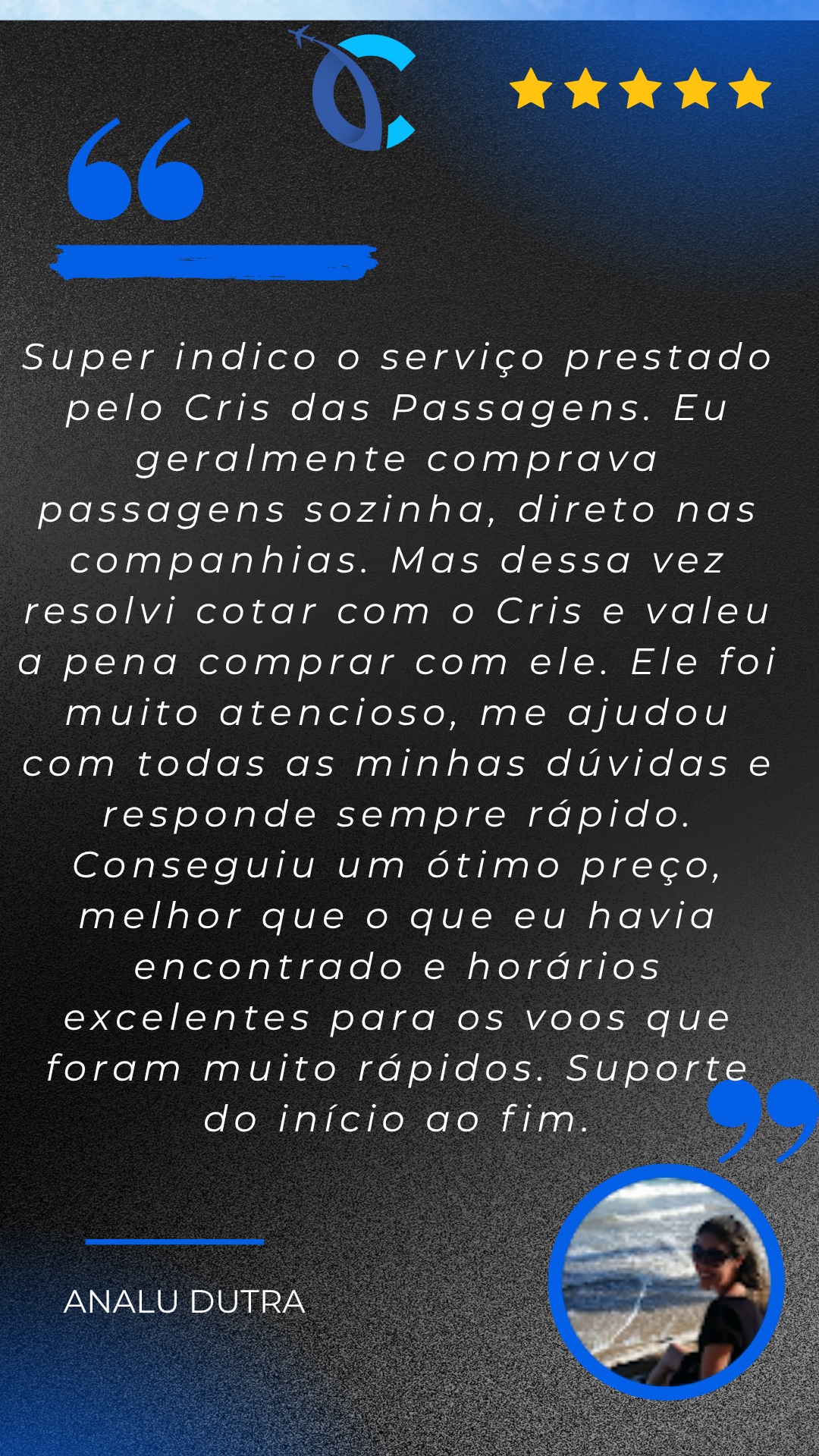 Com o Cris das Passagens, você viaja com economia, apoio e confiança.