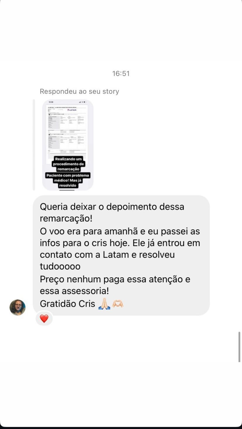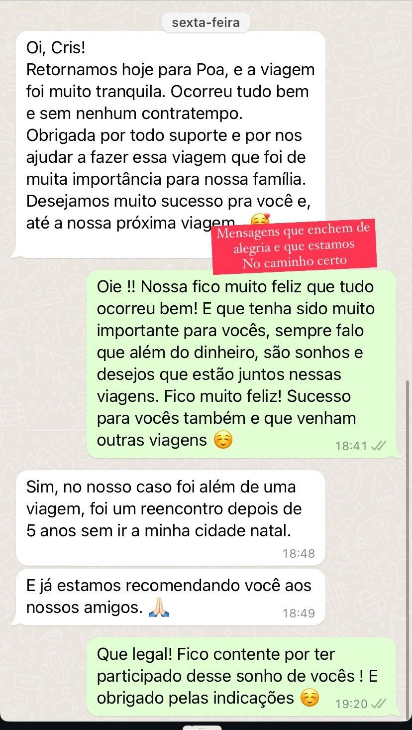 - Atendimento personalizado: O Cris, oferece um atendimento dedicado, ajudando o cliente encontrar a melhor opção de voo para suas necessidades.
